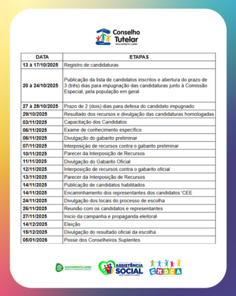 Estão reabertas as inscrições para o processo Eleitoral Suplementar do Conselho Tutelar!